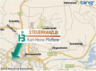 Über die B2 oder die B16 folgen Sie in Donauwörth aus allen Richtungen kommend der Beschilderung in Richtung Bahnhof, denn Bahnhofstraße und Dillinger Straße münden direkt ineinander. Sobald Sie die Dillinger Straße erreicht haben, sind die Kanzleiräume in der Hausnummer 10 unmittelbar von der Straße aus erkennbar. Parkplätze sind vor und hinter dem Gebäude in ausreichender Anzahl vorhanden.
